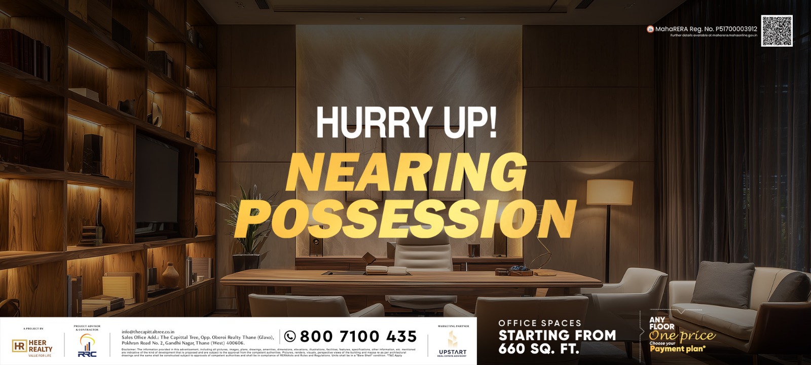Mumbai’s Eastern Suburbs and Thane’s Ghodbunder Road are heading towards saturation. Pokhran Road No. 2 in Thane (W) is where all the action is shifting, with an influx of top developers coming up with various commercial and residential projects. It is an upcoming BKC in Thane (W). This is the ideal business destination for those looking to grow rapidly.
